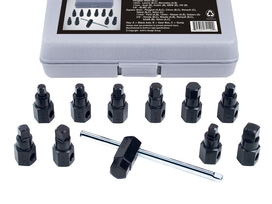 Приобрести T72140 Набор для откручивания масляных пробок, 12 пр. от компании AmPro (Тайвань) из раздела Инструмент для системы смазки и фильтрации