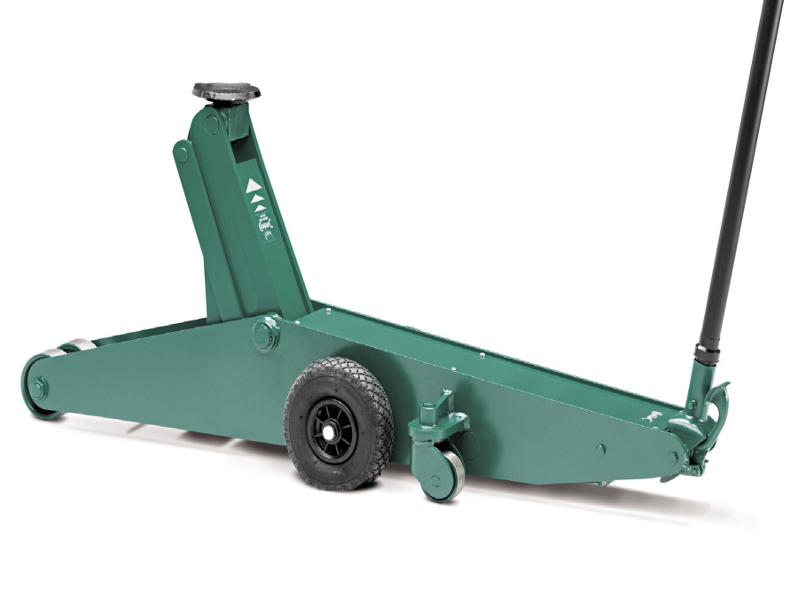 Длинная удобная ручка позволяет без особых трудозатрат установить домкрат в любое место под автомобилем, а педаль за минимальное время поднимет опорную площадку под авто.