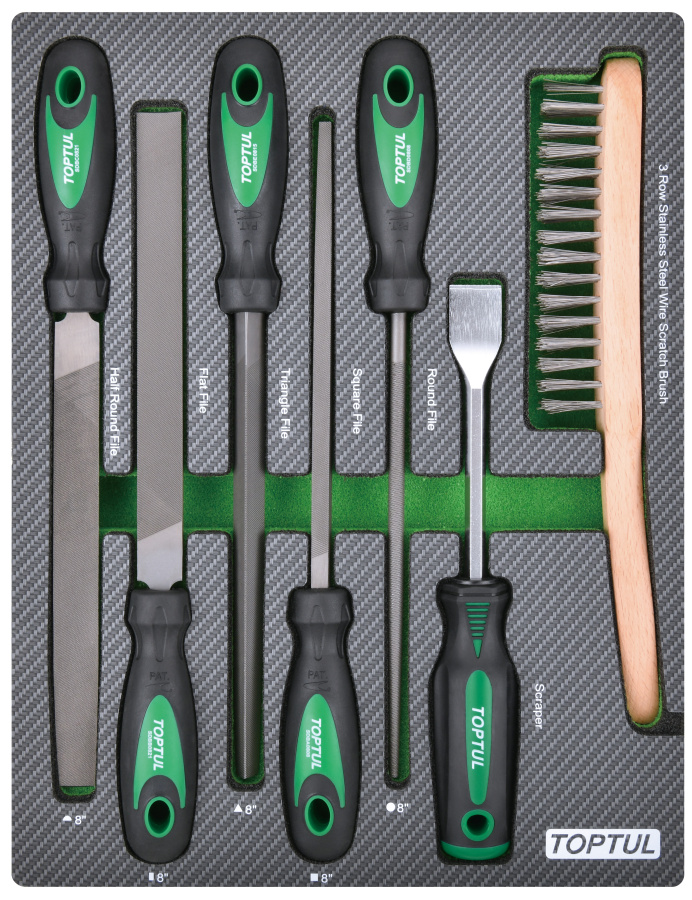Набор инструментов, напильники, шабер и щетка, 7 пр. в мягком ложементе TOPTUL GEB0705 купить в Великом Новгороде и других городах России