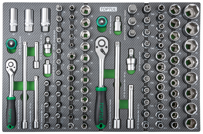 Набор головок и аксессуаров 3/8" и 1/2" 6-гр., 104 предмета в мягком ложементе (D) TOPTUL GEDA429 купить в Великом Новгороде и других городах России