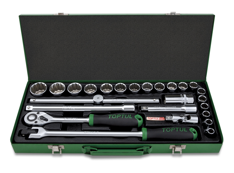 Набор головок и аксессуаров 1/2" 12-гранных 10-32 мм, 25 предметов в метал. кейсе TOPTUL GCAD2512 купить в Великом Новгороде и других городах России