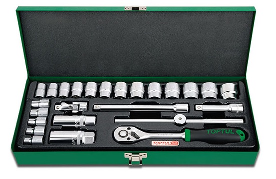 Набор головок и аксессуаров 3/8" 12-гранных 6-24 мм, 25 предметов в метал. кейсе TOPTUL GCAD2504 купить в Великом Новгороде и других городах России