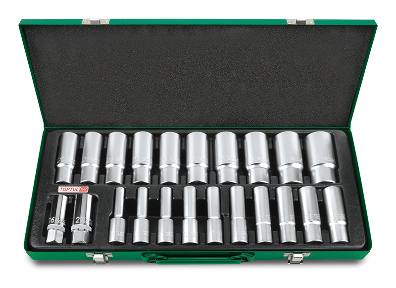 Набор головок удлиненных 1/2" 6-гранных 8-32 мм, 22 предмета в метал. ящике TOPTUL купить в Великом Новгороде и других городах России